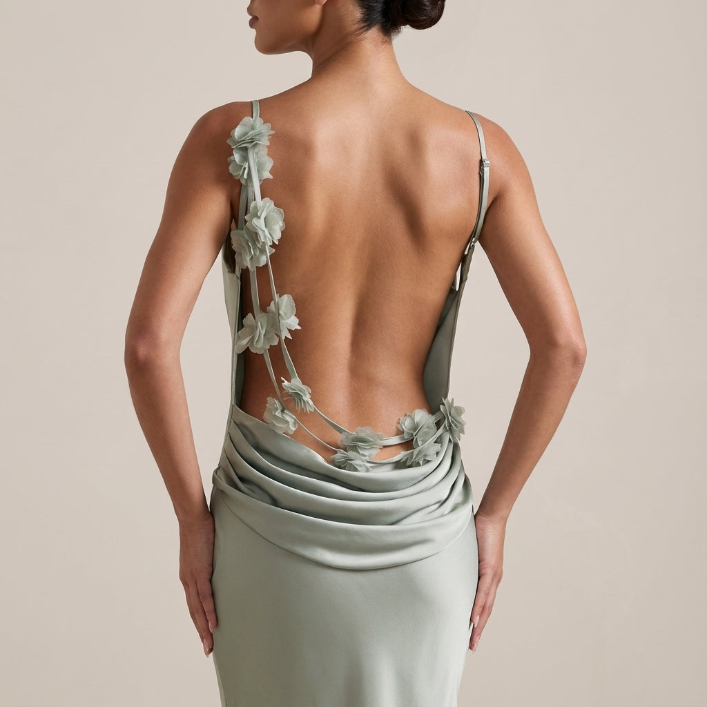 Vestido maxi mujer tirantes finos espalda descubierta escote drapeado | Eventos